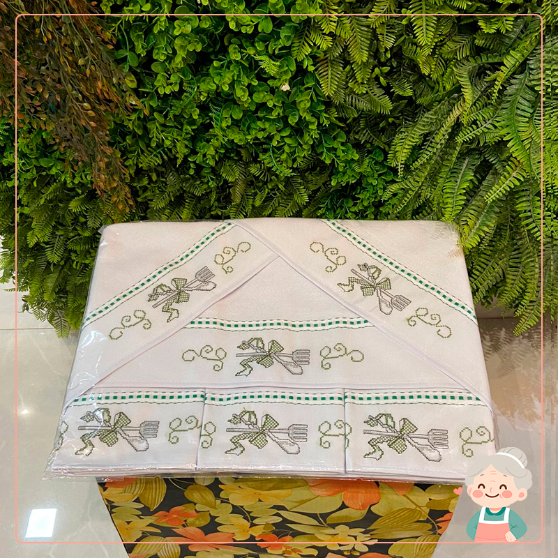 Pano de Prato Semaninha Ponto Cruz Garfo Verde - 7 Peças